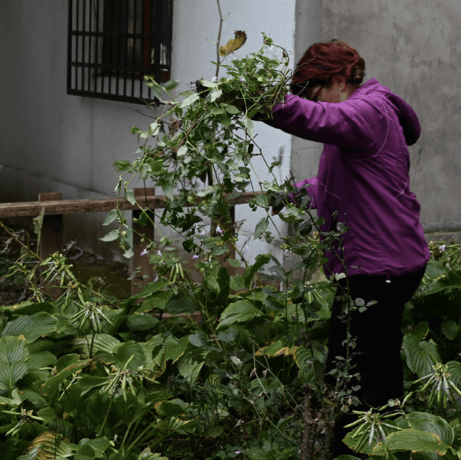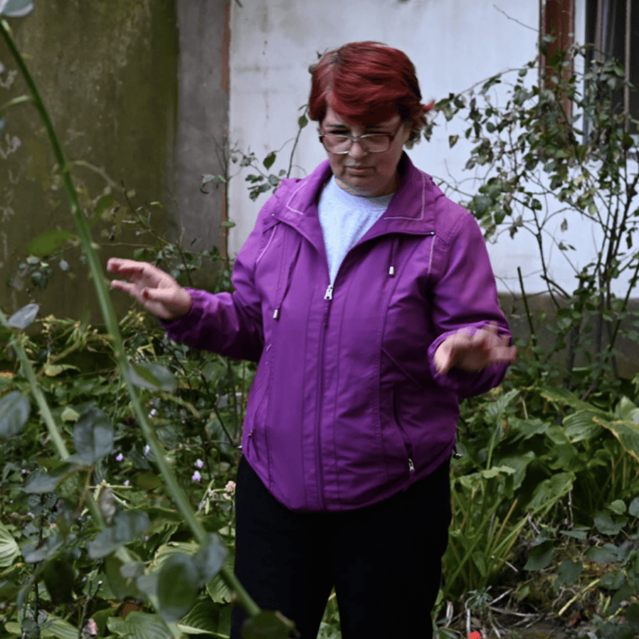 altă florica, florica grigore… spre seara ne-am dus către parcul din centru. știam ca sunt acolo oameni adunați pe bănci, așa că neam apropiat de un grup de femei. vreo 4 pe o bancă. le-am întrebat direct dacă vreuna din ele are grijă de o grădină de bloc. cu voce puternică două dintre ele au reacționat imediat. doamne ferește. nu îmi place și nici nu vreau. dar au arătat spre a patra femeie ce stătea la marginea băncii. florica ne-a zis ca da are o grădină de care are grijă cu bucurie. am întrebat-o unde e, că poate reușim să o vedem și noi acum cât de curând că se întunecă. dar vin cu voi că oricum trebuie să ajung acasă. și ea avea în mână sacoșe de cumpărături. când am ajuns acolo, soțul ei o aștepta la masa din grădină. era o masă cu structură metalică, adusă din altă parte. eu nu mai aveam memorie în telefon nici să filmez nici să înregistrez. în timp ce ne povestea florica despre grădină soțul ei ne atrage atenția că tare mult îi place lui florica să vina să o îngrijească, cu toate că stă la etajul 4 și are vedere pe partea cealalta. spune ca nu o înțelege și a încercat de mai multe ori să o descurajeze. la ce îți trebuie ție o grădină dacă nici măcar nu e imediat lângă tine. cu toate ca oamenii arunca gunoaie ea continua sa vină să le adune și să aibă mai departe grija de ea.