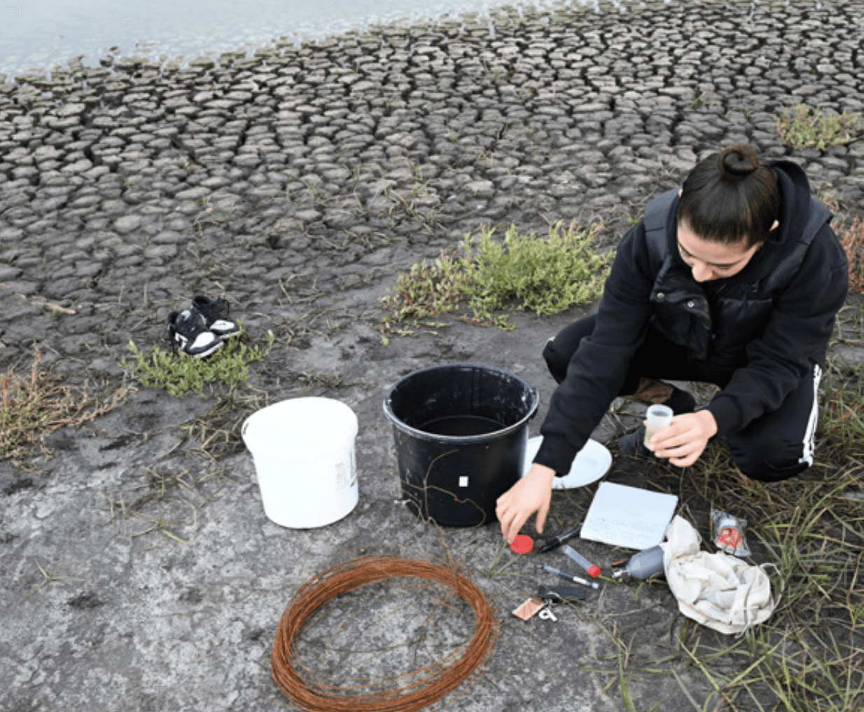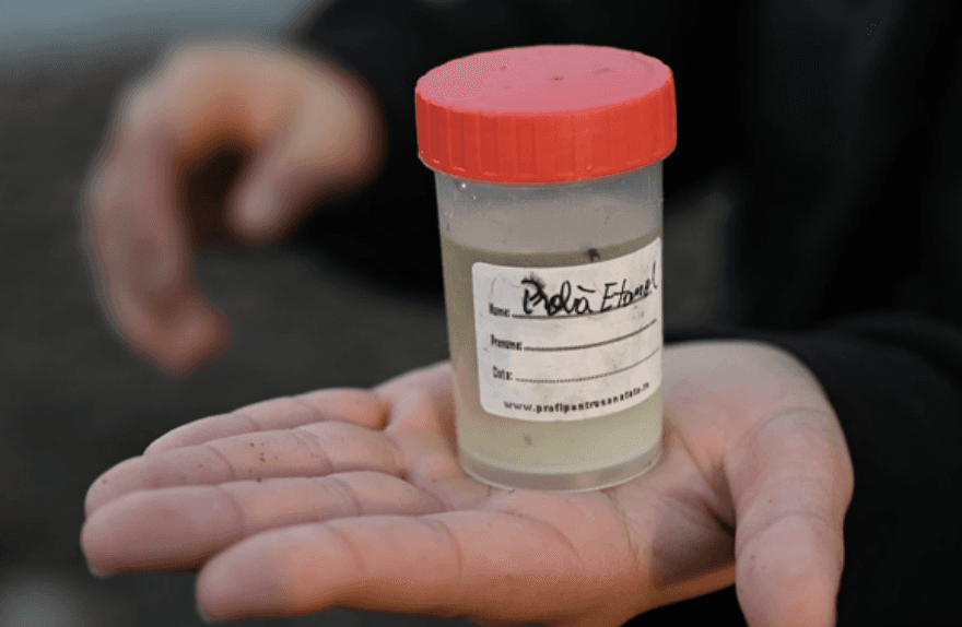 Cu ajutorul unui fileu, am prelevat probe din apa lacului și am filtrat câțiva litri de apă. Am trecut proba în flacoane, am adăugat etanol de 96% și am studiat-o la microsop.