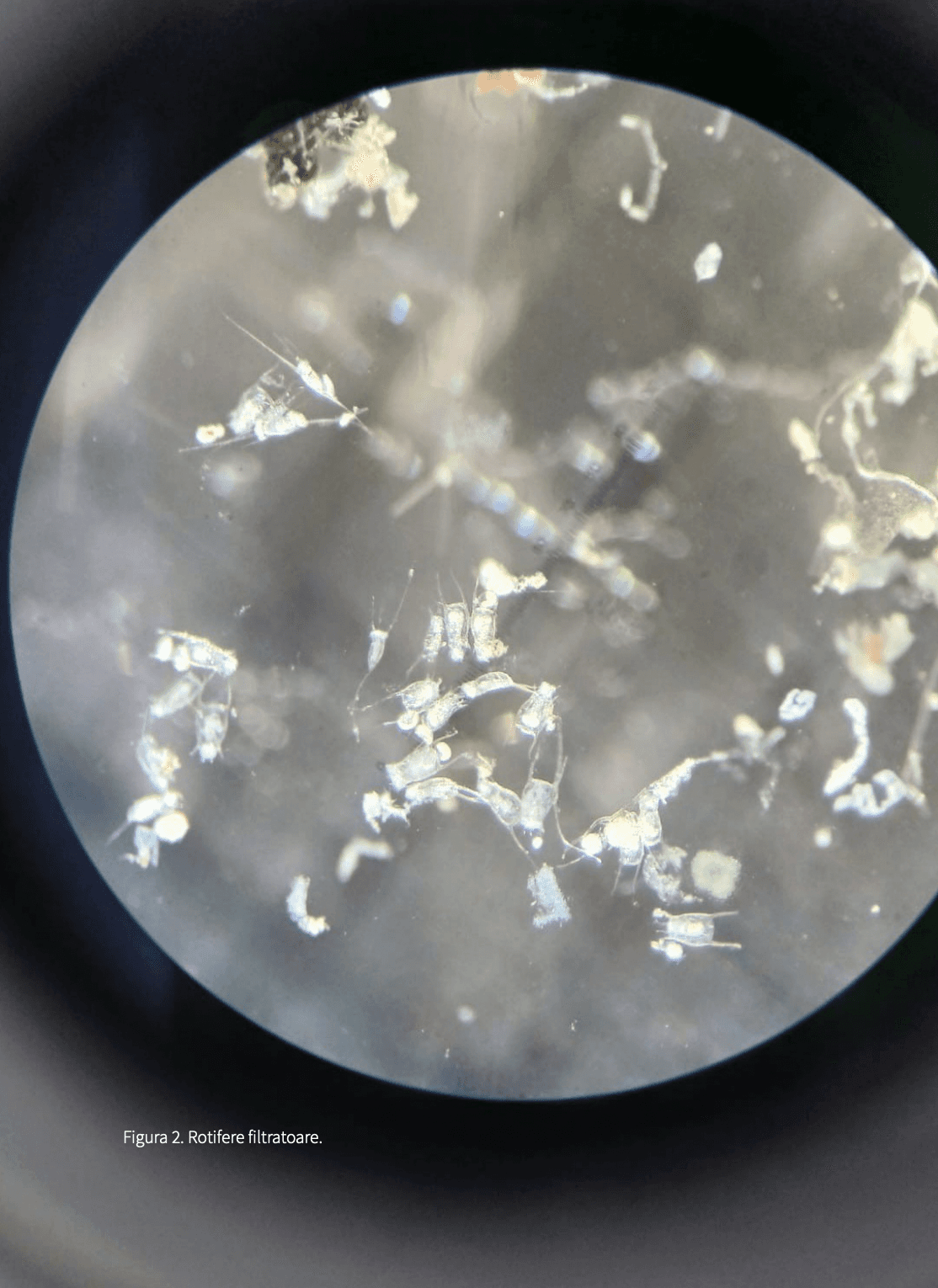 • Rotifere: animale microscopice care se mișcă continuu și filtrează materia organică moartă din lac – figura 2.
