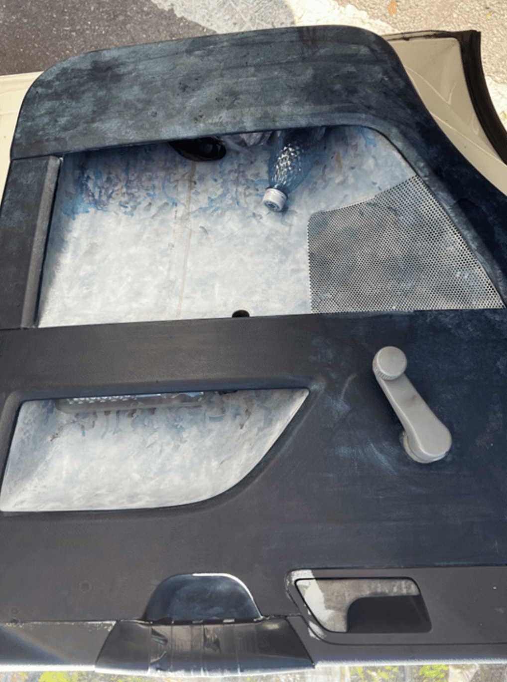 Se simte miros de solvenți. Din cauza căldurii, ies din lipiciul tapițeriei de pluș de pe plafon. Da, așa e când vrei să înfrumusețezi lucrurile. Mie îmi place partea interioară a ușii din dreapta, e mânjită în grabă cu vopsea dar arată pictural. O minibilă disco atârnă de oglinda retrovizoare. „Eu n-aș face așa ceva niciodată“, zic, „ca să nu ne oprească poliția“. Poate totuși, suntem nevinovate, avem peste 40. Doar decorație, desigur.